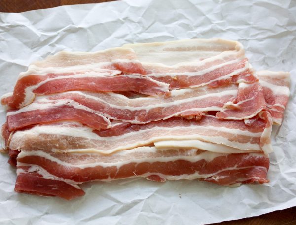 Gesneden gerookte ontbijtspek van het Baambrugs big.